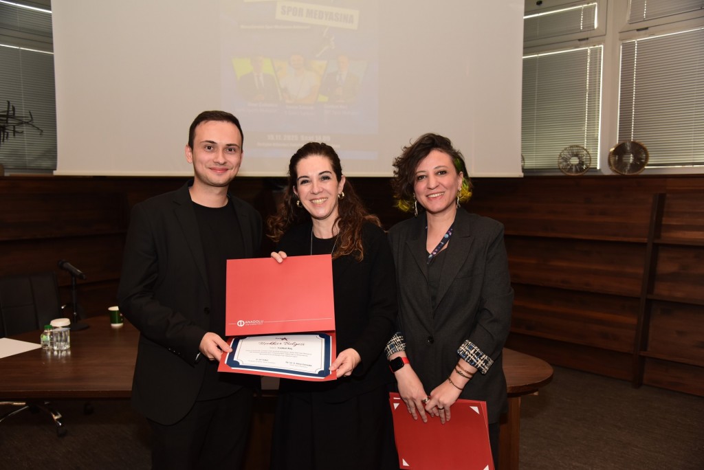 Anadolu Üniversitesi Kurumsal İletişim Koordinatörlüğüne bağlı Radyo A tarafından düzenlenen “Radyo A’dan Spor Medyasına” etkinliği İletişim Bilimleri Fakültesi Şener Şen Kültür Salonu’nda gerçekleştirildi. Moderatörlüğünü Radyo A Program ve Kültür Sanat Direktörü Dr. Elif Yılmaz’ın yaptığı ve beIN Sports Muhabiri Onur Çubukcu, S Sports Spikeri Soner Sancak ve TRT Spor Muhabiri Cankat Koç’un konuk olarak katıldığı etkinliğe Radyo A Genel Yayın Yönetmeni ve Haber Direktörü Öğr. Gör. Dr. Nebiye Özaydemir ve çok sayıda öğrenci katılım gösterdi.